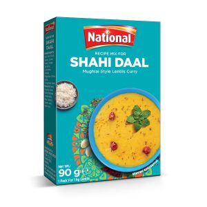 £5.99National Shahi Daal 6 × 90 g is a convenient multipack of National’s signature Shahi Daal recipe mix, designed for easy preparation of a rich, Mughlai-style lentil curry. Made from a curated blend of premium spices—cumin, coriander, turmeric, cardamom, cinnamon, cloves, black pepper, and chilli—it delivers a fragrant, creamy daal with mild warmth.