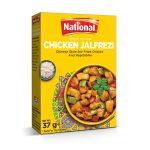 National Chicken Jalfrezi Spice Mix is used to create a delicious chicken with vegetables dish. All you need is chicken, vegetables, ghee and yogurt. Just make paste with this mix and marinate the chicken for a mouth-watering dish that your whole family will love. Serve hot with rice.